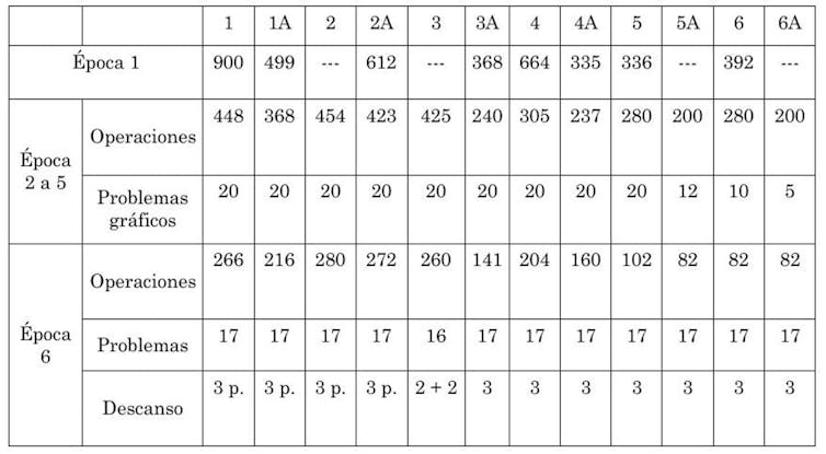 A lo largo de los 60 años estudiados se observa la disminución tanto en número como en dificultad de las operaciones aritméticas planteadas.